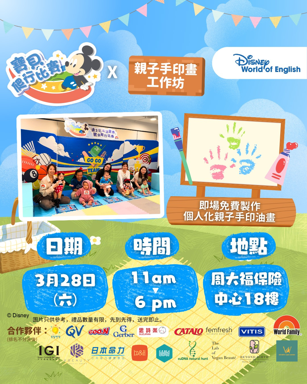 現場設有「迪士尼美語世界」親子手印畫工作坊,各位爹哋媽咪可以同寶寶一齊即場製作個人化手印油畫,享受親子時光❤️